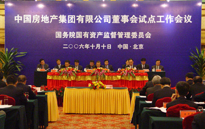 2006年10月10日,國務院國資委在京召開中國房地產集團有限公司(以下簡稱中房集團)董事會試點工作會議。國務院國資委副主任邵寧出席會議。邵寧代表國務院國資委向中房集團外部董事頒發聘書,中房集團與外部董事簽訂服務合約。中房集團董事會由五位外部董事和四位非外部董事組成,外部董事為:張青林、任傳俊、范曉復、潘崇義、于長春,非外部董事為:中房集團董事長、黨委書記甄少華,總經理、黨委副書記徐立鵬,黨委副書記王江濤,職工董事趙如冰。至此,中房集團董事會試點工作正式啟動,中房集團建立現代企業制度、完善法人治理結構工作進入了新階段。隨后,邵寧代表國資委就中房集團董事會試點工作發表講話。