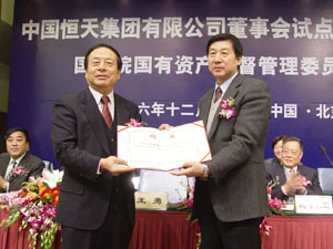 2006年12月18日,國務院國資委在京召開中國恒天集團有限公司(以下簡稱恒天集團)董事會試點工作會議。國務院國資委黨委副書記、副主任王勇出席會議。王勇代表國務院國資委向恒天集團外部董事頒發聘書,恒天集團與外部董事簽訂服務合約。隨后,王勇代表國資委就恒天集團董事會試點工作發表講話。恒天集團董事會有四位外部董事:周明臣、任傳俊、王振侯、高世星,非外部董事目前為四人,分別是:王天凱、常俊傳、劉海濤、楊永元,之后職工董事將由民主選舉產生。至此,恒天集團董事會試點工作正式啟動,恒天集團建立現代企業制度、完善法人治理結構工作進入了新階段。