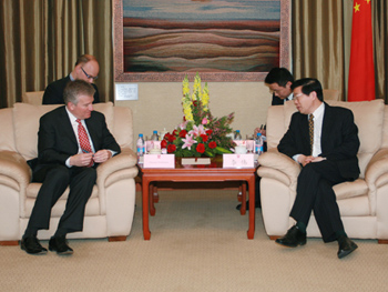 4月21日下午,國務院國資委副主任李偉在委內會見了美國紐約證券交易所首席執行官鄧肯一行。雙方就美國次級按揭貸款危機、美國證券市場的監管環境以及中央企業海外上市等問題交換了意見。