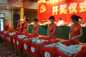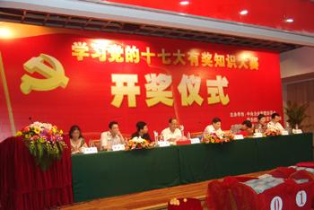 由中央企業黨建政研會和國務院國資委宣傳工作局聯合主辦、中央企業黨建政研會會刊--企業文明雜志社承辦的“學習黨的十七大精神有獎知識大賽”,于去年11月拉開帷幕,經過半年時間,近百家中央企業和部分省市國資委所屬企業70多萬人參賽,參賽者遍及全國30多個省、市、自治區。大賽受到國資委領導的高度重視,國資委黨委委員、副主任王瑞祥專門作出批示,國資委黨委宣傳部部長杜淵泉親自過問。各中央企業黨委黨組精心組織,廣大干部職工認真答題,有的企業還組織了閉卷答題,保證了大賽的順利進行。大賽開獎儀式6月21日在重慶紅樓賓館隆重舉行,中國兵器工業集團公司、中國移動通信集團公司、中國鐵路工程總公司等17家單位獲得組織獎。在重慶市公證處的現場監督下,從收回的586 735份有效答題卡中,現場隨機抽出22個幸運獎。大賽共設了包括轎車、摩托車在內1000多個組織獎、幸運獎和紀念獎。國務院國資委宣傳工作局副局長、中央企業黨建政研會副會長曾堅出席開獎儀式并指出,活動對于推動中央企業和國資監管機構干部廣大員工進一步深入學習領會、貫徹落實黨的十七大精神,進一步落實國有資產保值增值的責任,推動企業又好又快發展,產生了廣泛而積極的作用。企業文明雜志社總編李祖榮在大賽情況報告中認為,大賽在全國學習十七大精神同類賽事中居于領先水平,主辦重視、組織有力、承辦精心、設獎豐厚、效果明顯是大賽展現的五個特點。重慶市政協、重慶新聞出版局、重慶市期刊協會、重慶市社科聯等單位領導到會祝賀。獲獎單位代表中國兵器、中國航天科技、中國南車集團的代表在會上作了交流發言。中國兵器、中鐵工程、中國移動、中石化、中國航天科技、中國核工業、中煤能源、中國南方機車車輛、中船重工、中國網通、攀鋼等集團代表50余人出席了開獎儀式。中央企業黨建政研會秘書長李世華主持了開獎儀式。