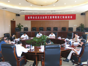 2008年9月9日-10日,國務院國資委群工局組織召開董事會試點企業職工董事履職匯報座談會,國資委副主任、黨委委員王瑞祥出席會議并發表了重要講話。14家試點企業職工董事,國資委董事會試點辦公室和群工局有關同志參加了座談會,座談會由群工局局長李學東主持。