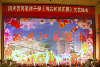 為慶祝新中國成立60周年,根據中組部關于精心組織離退休干部開展富有特色、生動活潑慶祝活動的要求。國資委11個離退休干部局的7000名老同志,通過大合唱、歌舞表演、書畫攝影展覽、詩歌征文和座談會等形式,歌頌我們偉大祖國的繁榮昌盛,抒發離退休干部對偉大祖國的無比熱愛,反映離退休干部豐富多彩的晚年生活。在各離退休干部局開展慶祝活動的同時,按照國資委領導的要求,國資委離退休干部管理局又組織編排了一場國資委離退休干部慶祝新中國成立60周年《向共和國匯報》大型文藝演出,將慶祝活動推向了高潮。