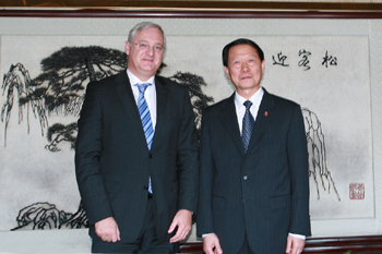 11月10日,國務院國資委主任李榮融在委內會見了荷蘭皇家殼牌集團首席執行官傅賽先生一行。李榮融介紹了國資委成立以來所做的主要工作,特別就中央企業公司治理、業績考核、薪酬管理、結構布局調整及應對國際金融危機的舉措等做了詳細闡述。傅賽先生對國資委及中央企業取得的成就,尤其是在金融危機中的良好表現表示高度贊賞,并希望與有關中央企業進一步加強合作。雙方還就其它共同關心的問題進行了深入交流與探討。