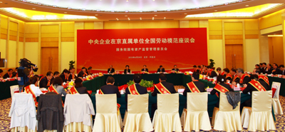 4月26日下午,國務院國資委在北京釣魚臺國賓館組織召開中央企業在京直屬單位全國勞動模范座談會。國務院國資委主任、黨委書記李榮融,黨委副書記、副主任李偉,副主任、黨委委員黃丹華,副主任、黨委委員金陽,黨委委員、機關服務管理局臨時黨委書記李壽生,以及37名中央企業在京直屬單位全國勞動模范和4名特邀代表參加了座談。李榮融作了重要講話,并與勞模合影留念。座談會由黃丹華主持。