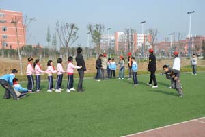 航天科技:七院四川航天職業技術學院 青年志愿者與孩子們在操場做游戲 |