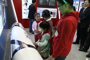 中國航天科工集團公司:5月4日,中國航天科工集團公司團委開展了關愛農民工子女愛心捐贈活動,向農民工子女捐贈了學習用具,并帶領他們參觀了航天科工總部展室,讓他們走進航天,感受航天,熱愛航天。在仿真導彈模型前,孩子們表現出了濃厚的興趣,每個小朋友臉上都洋溢著幸福的微笑,與現代化的導彈武器的第一次親密接觸,必將在他們幼小的心靈里留下不可磨滅的印象。同日,七院團委組織所屬施工企業的農民工子女參觀了父母的工作場所、盧溝橋等,使他們進一步接受愛國主義教育,更加熱愛生活、熱愛祖國。