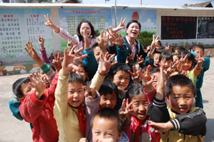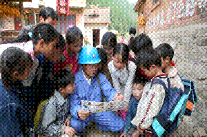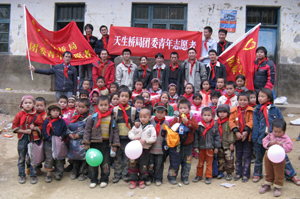 中國石油:湖北十堰銷售分公司的青年志愿者 與孩子們親切合影 |