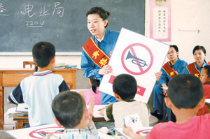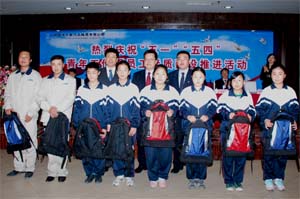 中國國電集團公司:5月4日,中國國電集團公司團委舉行了“中國國電集團公司青年志愿者關愛農民工子女志愿服務行動出發儀式”。與會青年志愿者宣讀了關愛活動志愿者誓詞。集團所屬龍源電力集團股份公司團委與昌平區農民工子弟學校雨竹小學結成互助對子,由100名青年志愿者對口幫扶100名農民工子女,通過贈送學習用品等,表達對農民工子女的關愛。