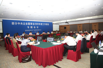 6月29日,國資委在京召開中國中材集團有限公司(以下簡稱中材集團)董事會2009年度工作報告專題會議。會議由邵寧副主任主持。監事會董樹奎主席,委內有關廳局負責同志,中材集團董事會成員、董事會秘書等參加了會議。