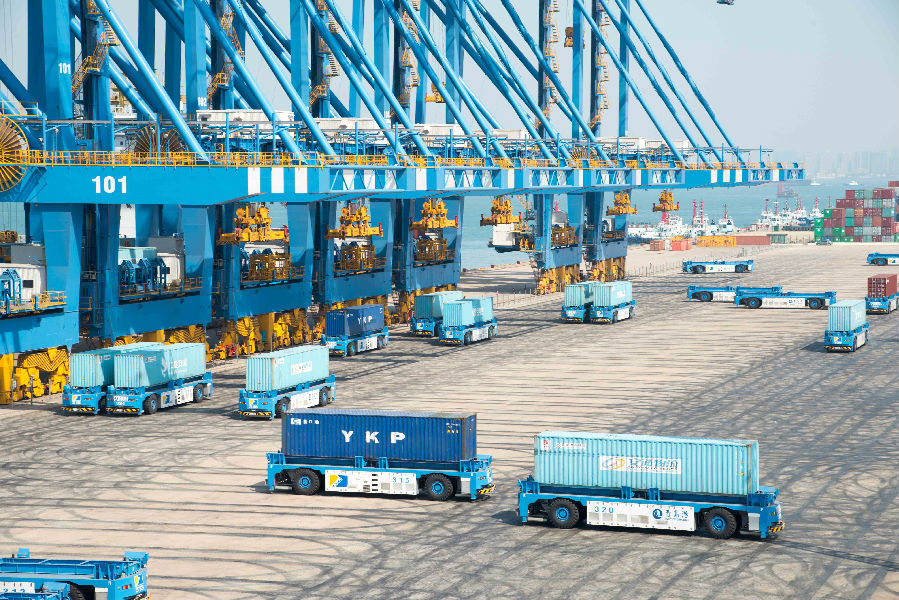 青島港(gang)全自動化碼頭(tou)建成后(hou),將成為具有中國港(gang)口(kou)特色、具備最先(xian)進技術、具有示(shi)范(fan)意(yi)義的標志(zhi)性(xing)港(gang)口(kou)。