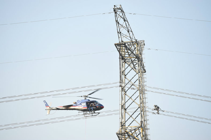 開展直升機帶電作業是南方電網公司提高線路巡檢效率,確保電網安全穩定可靠的需要。林丹丹 攝