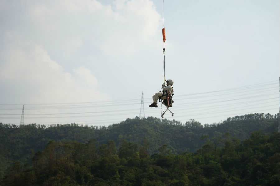 直(zhi)(zhi)升機轟鳴升空(kong),風(feng)起塵揚,一名全副武裝的人(ren)員隨(sui)之被直(zhi)(zhi)升機吊繩拉升至空(kong)中飛行(xing),幾(ji)分鐘后該人(ren)員穩穩地坐在高(gao)高(gao)的高(gao)壓電塔的導線(xian)上……這不是(shi)在電影院(yuan)看好萊塢大片,這是(shi)發生(sheng)在南方電網廣東(dong)公司500千伏(fu)襟桂線(xian)上的真(zhen)實場景。9月13日(ri),在廣東(dong)中山市板芙鎮,南方電網公司將直(zhi)(zhi)升機帶電作業(ye)應用(yong)于(yu)在運行(xing)超高(gao)壓輸電線(xian)路,屬國(guo)內首次,并取得圓滿成功(gong)。