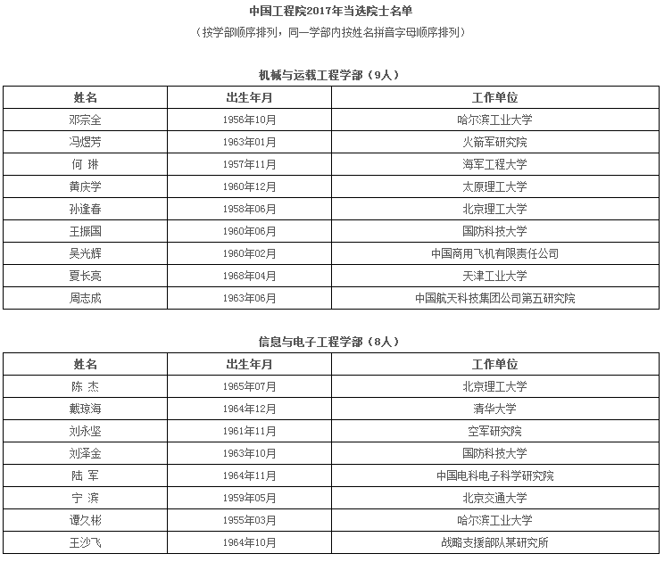 11月27日,中(zhong)國工(gong)程院(yuan)公布了新當(dang)選(xuan)的67名(ming)院(yuan)士(shi)名(ming)單。新當(dang)選(xuan)的67名(ming)院(yuan)士(shi)中(zhong),男性63人(ren)(ren),占(zhan)94%;女性4人(ren)(ren),占(zhan)6%。最(zui)小年(nian)(nian)(nian)齡(ling)(ling)49歲(sui),最(zui)大年(nian)(nian)(nian)齡(ling)(ling)67歲(sui),平均年(nian)(nian)(nian)齡(ling)(ling)56.37歲(sui)。60歲(sui)(含(han)(han))以下的57人(ren)(ren),占(zhan)85%;61歲(sui)至70歲(sui)(含(han)(han))的10人(ren)(ren),占(zhan)15%,更多優秀的中(zhong)青(qing)年(nian)(nian)(nian)工(gong)程科技專(zhuan)家當(dang)選(xuan)。
