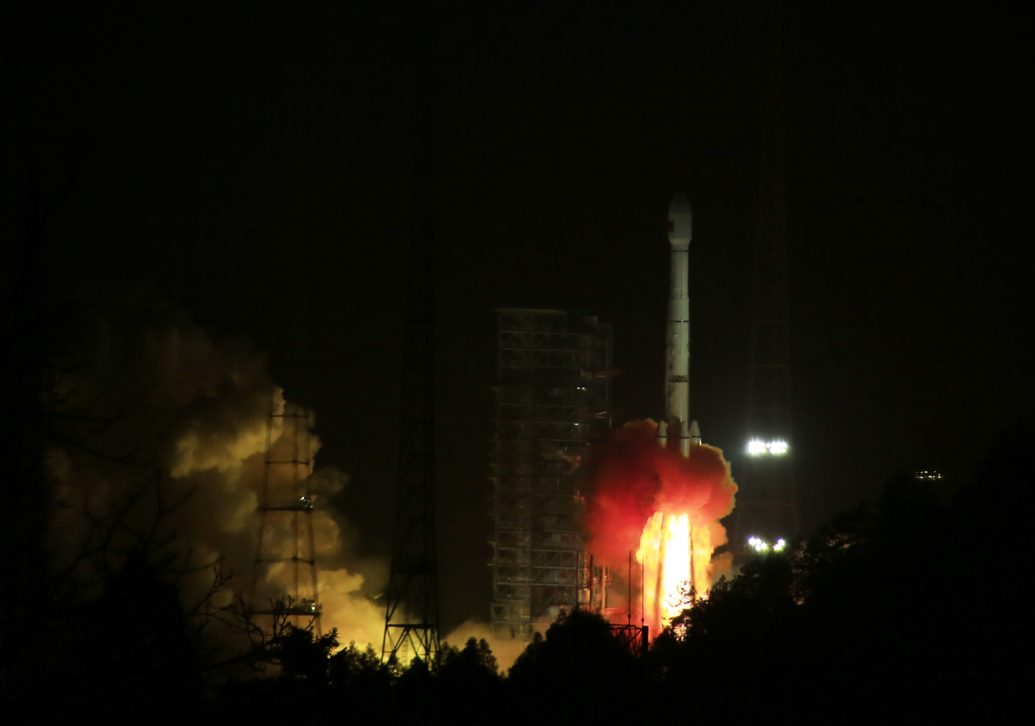 長三乙/遠征一號火箭成功發射北斗三號工程第二組衛星。 謝奇勇 攝