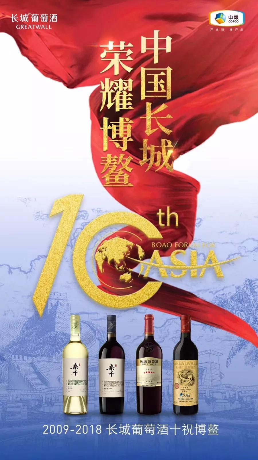 中糧集(ji)團長城(cheng)葡萄(tao)酒(jiu)將(jiang)作為博鰲(ao)年會指定用酒(jiu)亮(liang)相,用杯中盛滿的中國(guo)紅(hong),喜(xi)迎八方來客(ke)!