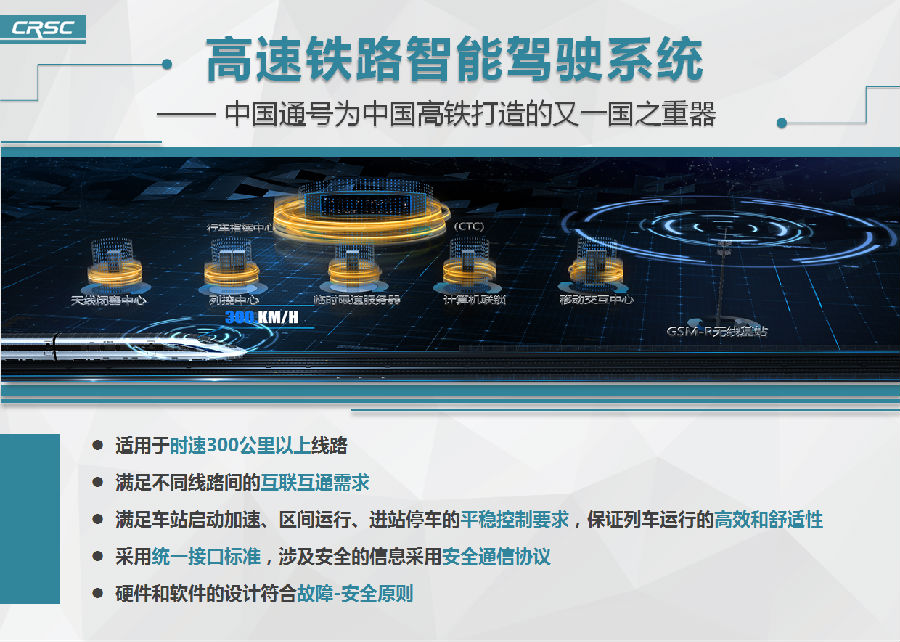 中(zhong)(zhong)國通(tong)號于2007年(nian)(nian)開始自(zi)(zi)(zi)動駕(jia)駛(shi)(shi)裝備(bei)(bei)(bei)的(de)自(zi)(zi)(zi)主研發工作(zuo),歷(li)時十(shi)年(nian)(nian)研發,2016年(nian)(nian),在(zai)廣東莞惠城際成(cheng)功實現時速200公里城際鐵(tie)路(lu)自(zi)(zi)(zi)動駕(jia)駛(shi)(shi)技(ji)術(shu)應用。2017年(nian)(nian)9月(yue)(yue),鐵(tie)路(lu)總公司立(li)項(xiang)科(ke)研重大課題《高(gao)鐵(tie)列車(che)(che)自(zi)(zi)(zi)動駕(jia)駛(shi)(shi)關鍵技(ji)術(shu)研究及(ji)京(jing)張(zhang)高(gao)鐵(tie)示范(fan)應用》,由中(zhong)(zhong)國通(tong)號牽頭編制高(gao)速鐵(tie)路(lu)自(zi)(zi)(zi)動駕(jia)駛(shi)(shi)系(xi)統(tong)總體技(ji)術(shu)方(fang)案及(ji)相(xiang)關設(she)備(bei)(bei)(bei)接口(kou)規范(fan)。2018年(nian)(nian)2月(yue)(yue)通(tong)過(guo)(guo)鐵(tie)總方(fang)案評(ping)審(shen),2018年(nian)(nian)6月(yue)(yue)通(tong)過(guo)(guo)試驗評(ping)審(shen)。2018年(nian)(nian)6月(yue)(yue)至(zhi)9月(yue)(yue),高(gao)鐵(tie)自(zi)(zi)(zi)動駕(jia)駛(shi)(shi)系(xi)統(tong)全套裝備(bei)(bei)(bei)(自(zi)(zi)(zi)動駕(jia)駛(shi)(shi)車(che)(che)載設(she)備(bei)(bei)(bei)ATO、車(che)(che)載超速防(fang)護(hu)設(she)備(bei)(bei)(bei)ATP、臨時限速服務(wu)器TSRS和列控中(zhong)(zhong)心TCC)在(zai)京(jing)沈(shen)客專綜(zong)合試驗段進行(xing)現場(chang)(chang)試驗,測試項(xiang)目全部通(tong)過(guo)(guo)。京(jing)沈(shen)現場(chang)(chang)試驗期間,中(zhong)(zhong)國通(tong)號C3+ATO系(xi)統(tong)持(chi)續穩(wen)定運行(xing),以近乎(hu)零缺(que)陷的(de)高(gao)水平順利通(tong)過(guo)(guo)專家組數百項(xiang)細致(zhi)苛刻的(de)測試,諸多優(you)勢獲專家肯定。
