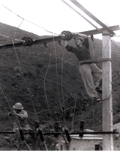 上世紀70年代,橫琴島電(dian)力工人(ren)在維(wei)修(xiu)供電(dian)線路(lu)