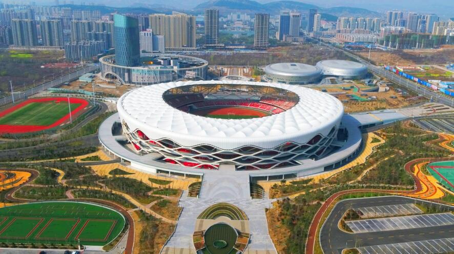 棗莊體育(yu)中心(xin)體育(yu)場總(zong)建筑面(mian)(mian)積5.4萬(wan)平方(fang)米,平面(mian)(mian)呈橢圓形,立面(mian)(mian)呈馬鞍形。內場設3萬(wan)席座位,具備承辦(ban)省(sheng)級綜合賽(sai)事(shi)和國(guo)內單(dan)項賽(sai)事(shi)的能力。基于該(gai)項目研發的《復雜菱形格構(gou)式(shi)鋼(gang)結構(gou)及車輻(fu)式(shi)索膜結構(gou)制作與安(an)裝技術(shu)》是對大型弧(hu)形鋼(gang)結構(gou)和大跨度索膜結構(gou)的經(jing)驗(yan)總(zong)結,經(jing)鑒定該(gai)成果達國(guo)際先進(jin)水平。