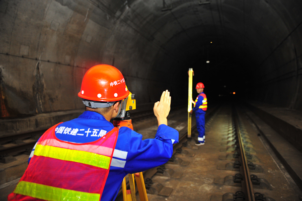 天(tian)窗間(jian)隙,測量人(ren)員進入(ru)高鐵(tie)隧道進行沉降量精測