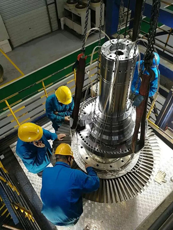 轉(zhuan)(zhuan)子(zi)是燃機(ji)的(de)核心部(bu)件(jian),其(qi)高速動(dong)平(ping)(ping)(ping)衡(heng)試(shi)驗(yan)是檢驗(yan)轉(zhuan)(zhuan)子(zi)設計制(zhi)造(zao)裝(zhuang)配水平(ping)(ping)(ping)的(de)重(zhong)要(yao)手(shou)段,難度(du)極高。不同于東方汽(qi)輪機(ji)以往研制(zhi)的(de)汽(qi)機(ji)轉(zhuan)(zhuan)子(zi),G50轉(zhuan)(zhuan)子(zi)為(wei)拉桿(gan)式(shi)結構(gou),從(cong)設計到(dao)試(shi)驗(yan)的(de)難度(du)都(dou)高于一般汽(qi)機(ji)轉(zhuan)(zhuan)子(zi)。為(wei)了(le)G50轉(zhuan)(zhuan)子(zi)高速動(dong)平(ping)(ping)(ping)衡(heng)試(shi)驗(yan)的(de)順(shun)利進(jin)行(xing),東方汽(qi)輪機(ji)提前策劃,識別風險,制(zhi)定預案,對動(dong)平(ping)(ping)(ping)衡(heng)的(de)軸承和轉(zhuan)(zhuan)接盤等重(zhong)要(yao)工(gong)裝(zhuang)提前進(jin)行(xing)制(zhi)造(zao)和性能分析(xi),并預先進(jin)行(xing)了(le)低(di)速動(dong)平(ping)(ping)(ping)衡(heng)試(shi)驗(yan)。