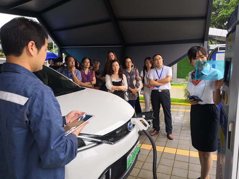 參觀者到粵港(gang)澳大(da)灣區電力營商(shang)環境體(ti)驗中心參觀,圖為了解南方電網(wang)的充電服(fu)務(wu)
