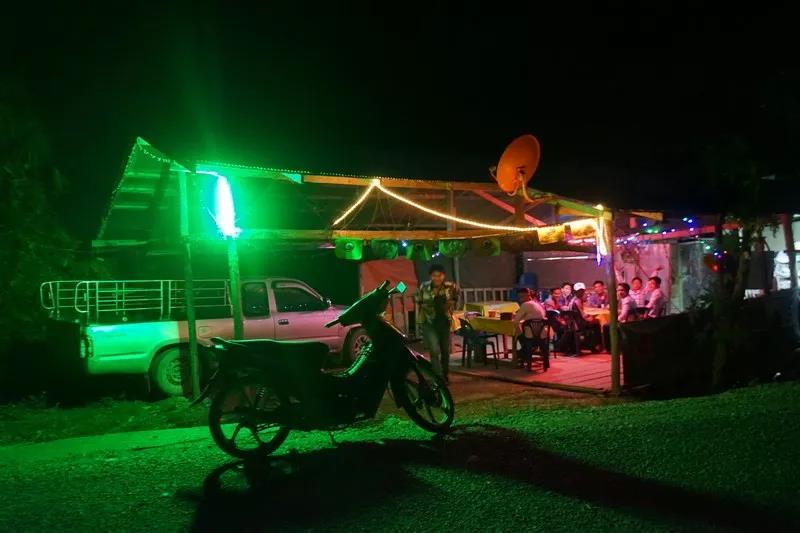 老撾南塔河河畔村民開設的飯店,燈火通明。林丹丹 攝