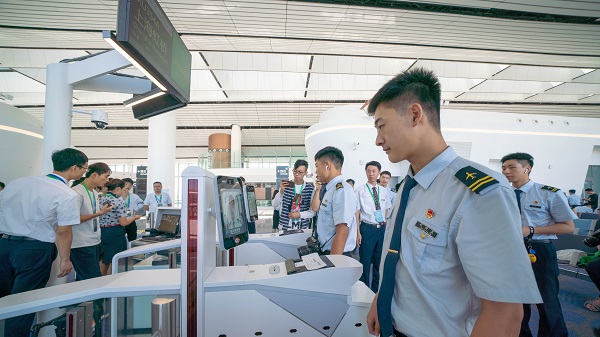 大興國際機場登機口采用人臉識別技術,旅客登機時僅需面對屏幕便可實現快速登機。