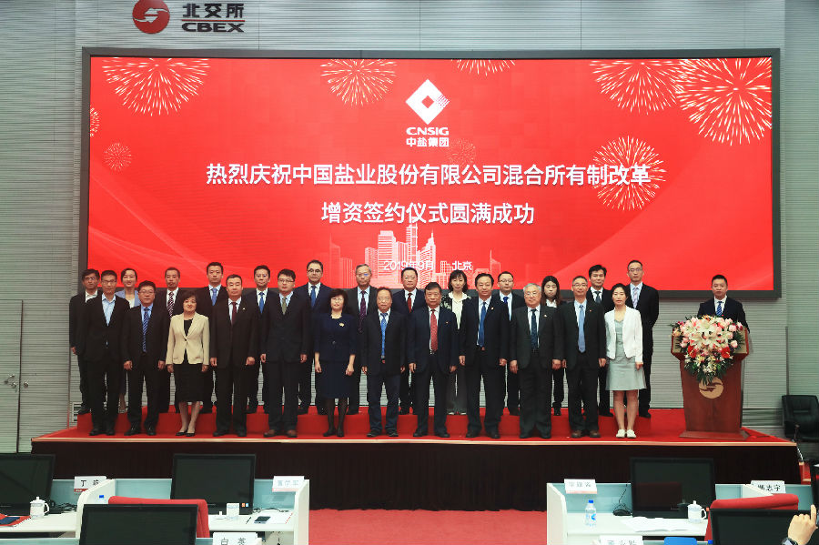 9月19日上午,中(zhong)鹽集團所屬中(zhong)國鹽業股份有限公司(以下簡稱(cheng):中(zhong)鹽股份)增資項目簽約(yue)儀式(shi)在(zai)北京產權交易(yi)所舉行(xing)。此次(ci)增資引戰取得顯(xian)著成(cheng)效,引入投(tou)資者13家,總投(tou)資額30.6億元。
