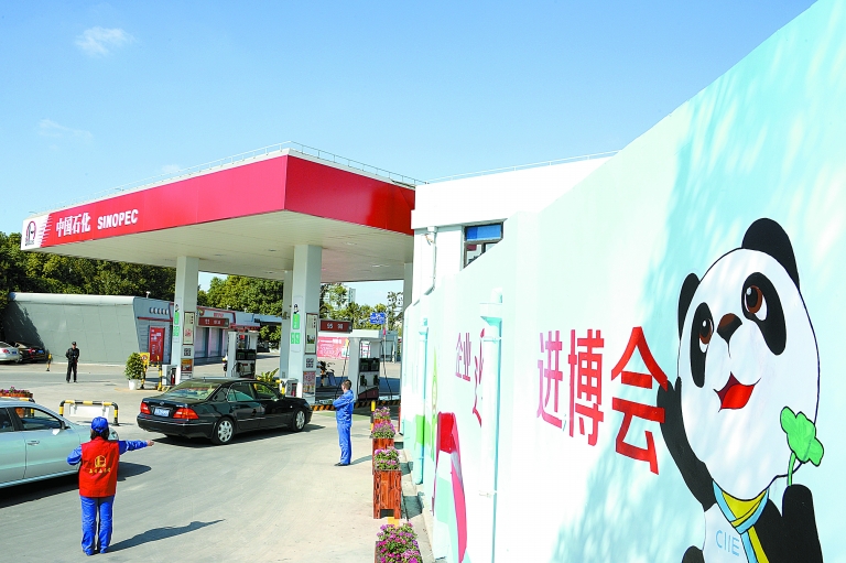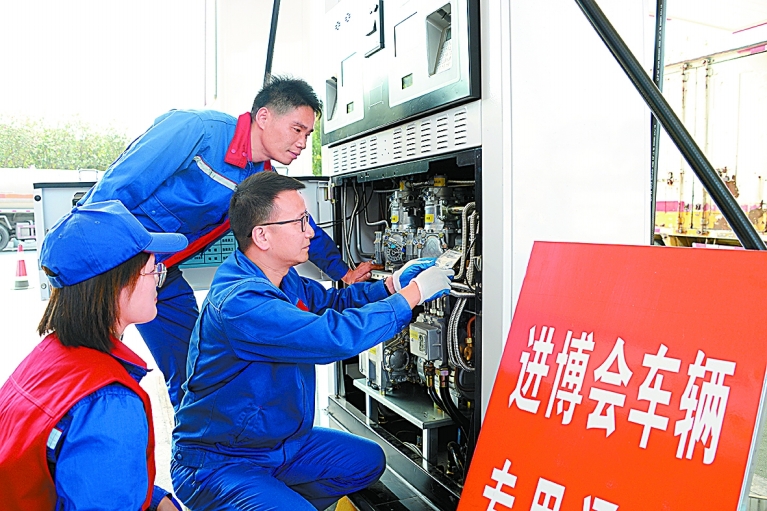 廣虹加油站員工為服務進博會車輛加油