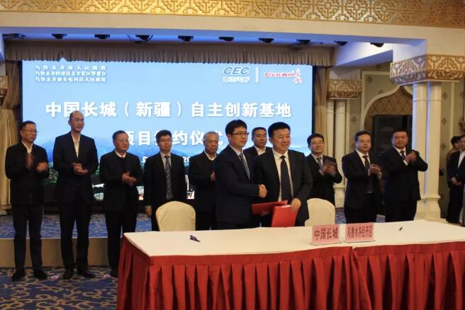 2019年12月30日(ri),中(zhong)國電子(zi)旗下(xia)中(zhong)國長城與新(xin)疆維吾爾自治區烏魯木(mu)齊市人民(min)政府簽署中(zhong)國長城(新(xin)疆)自主創新(xin)基地合(he)作(zuo)協議。