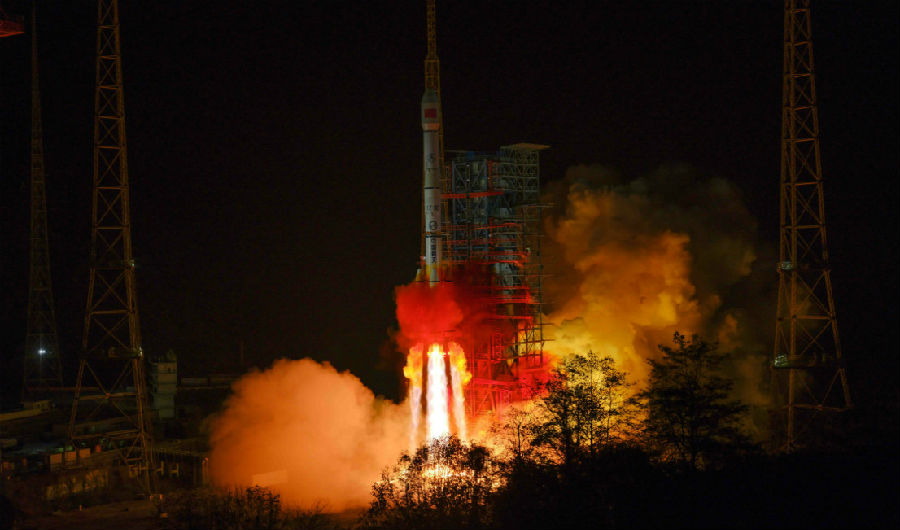 長征三號乙運載火箭點火升空(肖國軍 攝)