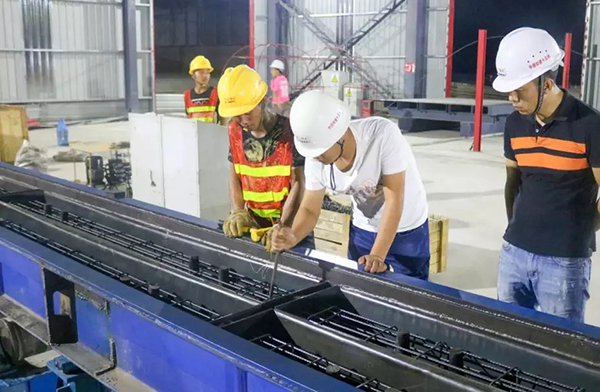 中(zhong)鐵十五局集團不等(deng)不靠,依靠前期物資儲備(bei)維(wei)持(chi)軌枕基地運轉,在(zai)人(ren)員、設(she)備(bei)的(de)磨合中(zhong)加大(da)對(dui)老(lao)撾(zhua)籍人(ren)員的(de)培訓力度,協助(zhu)加快生產(chan)速度,并于2月(yue)2日起成功開始雙班生產(chan)。另外,在(zai)保證(zheng)(zheng)產(chan)品質量的(de)前提下,項目對(dui)部分(fen)需要(yao)等(deng)待國內(nei)加工的(de)運輸配件,合理改變施(shi)工工序、積(ji)極尋找替代措施(shi)力推進(jin)生產(chan)。截至(zhi)2月(yue)13日已突破低產(chan)瓶頸、向高產(chan)邁進(jin),為(wei)取證(zheng)(zheng)后迅速達(da)到(dao)高產(chan)、力保工期節點打下基礎。