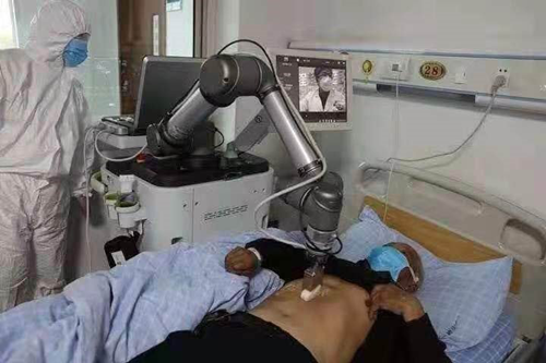 2月18日(ri)下午(wu)15時15分(fen),遠在700公(gong)里之外(wai)的(de)浙(zhe)江(jiang)省人(ren)(ren)民醫(yi)(yi)院遠程(cheng)超(chao)聲波醫(yi)(yi)學中心的(de)專家,利用中國(guo)電(dian)信5G技術,通過手(shou)柄(bing)遠程(cheng)控制黃陂體(ti)育(yu)館方艙醫(yi)(yi)院的(de)超(chao)聲機器(qi)人(ren)(ren)為患者進(jin)行超(chao)聲檢查。這是中國(guo)電(dian)信運用5G技術助力(li)實施新冠肺(fei)炎患者首(shou)例遠程(cheng)超(chao)聲診療。