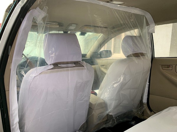 這種防(fang)護隔離膜是(shi)廠家結合天津出租車(che)(che)(che)市場的車(che)(che)(che)型定制設計,材料由聚(ju)氯(lv)乙烯薄(bo)(bo)膜制成,通過魔術貼(tie)(tie)使(shi)薄(bo)(bo)膜與車(che)(che)(che)內頂、前排座椅背后(hou)、后(hou)座腳墊等部位貼(tie)(tie)合連接,使(shi)車(che)(che)(che)廂前后(hou)形(xing)成相對獨立的空間(jian),能有效阻斷病毒飛沫(mo)傳播。