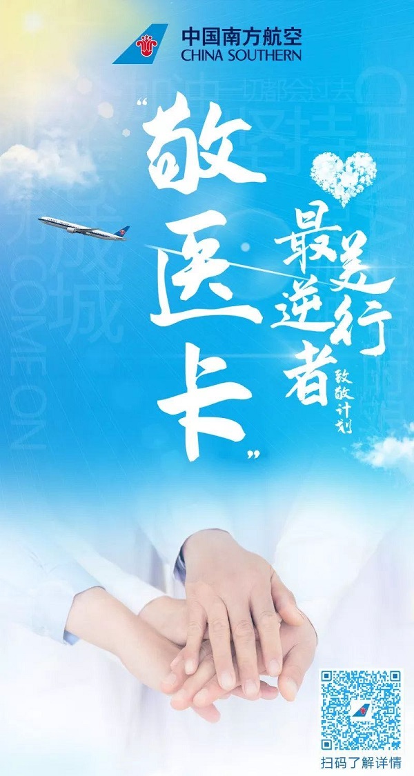 為感(gan)謝奮戰在抗“疫(yi)”一線的醫(yi)(yi)務工作者(zhe)(zhe),南航推(tui)(tui)出(chu)(chu)“最(zui)美逆行者(zhe)(zhe)致敬計劃(hua)”,首次面向(xiang)在職醫(yi)(yi)護人員推(tui)(tui)出(chu)(chu)“敬醫(yi)(yi)卡(ka)(ka)”。推(tui)(tui)出(chu)(chu)“溫暖(nuan)與(yu)共·客(ke)戶關懷(huai)計劃(hua)”,為旅客(ke)提供金銀卡(ka)(ka)延期保(bao)(bao)級與(yu)優(you)惠保(bao)(bao)級、普卡(ka)(ka)里程延期等服務。