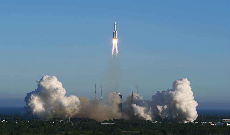 長征五號B運載火箭飛天瞬間(宿東 攝)