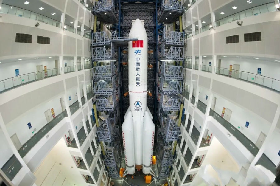長征五號B運載火箭在廠房中(宿東 攝)