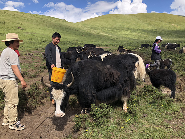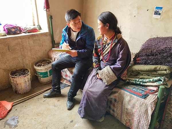 2017年8月,中鐵十七局集團職工劉印洲作為中國鐵建派駐青海省果洛藏族自治州甘德縣江千鄉協隆村駐村第一書記,在牧民家走訪。