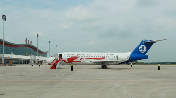 2020年(nian)5月15日(ri),江西(xi)航(hang)(hang)空首(shou)架國產ARJ21-700飛機“井(jing)岡山(shan)(shan)(shan)”號(hao)冠名暨(ji)首(shou)航(hang)(hang)活動(dong)在(zai)井(jing)岡山(shan)(shan)(shan)機場舉行(xing)。這(zhe)架航(hang)(hang)班號(hao)為RY8992的“井(jing)岡山(shan)(shan)(shan)”號(hao)ARJ21飛機于當(dang)天上午11時40分(fen)搭載47名體驗乘客(ke)從井(jing)岡山(shan)(shan)(shan)機場起飛,經(jing)過33分(fen)鐘飛行(xing),12時13分(fen)到達南昌(chang)昌(chang)北機場,順(shun)利完(wan)成首(shou)航(hang)(hang),掀開了(le)國產民機在(zai)華東地(di)區(qu)發(fa)展的新(xin)篇(pian)章。5月16日(ri),“井(jing)岡山(shan)(shan)(shan)”號(hao)將正式載客(ke)運營,執飛南昌(chang)-浦(pu)東往返航(hang)(hang)線。