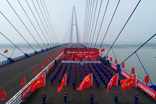 中國中鐵大橋局武漢青山長江大橋項目部130名建設者莊嚴宣誓