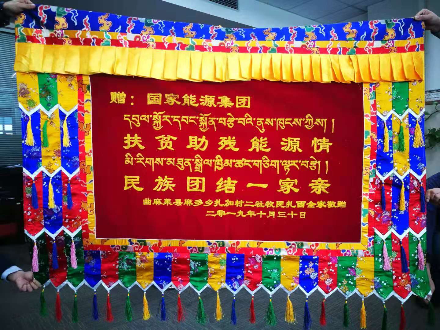 俄(e)金文毛(mao)患有重度肝包蟲(chong)的(de)(de)(de)(de)(de)(de)部位切除成功(gong);藏巴尕保心(xin)臟介入(ru)手(shou)術完成;9月(yue)28日,白瑪忠的(de)(de)(de)(de)(de)(de)肝包蟲(chong)移(yi)除手(shou)術也(ye)成功(gong)施行……一(yi)連串的(de)(de)(de)(de)(de)(de)好消(xiao)息(xi),讓扎西(xi)黝黑的(de)(de)(de)(de)(de)(de)臉上,再次露出久違的(de)(de)(de)(de)(de)(de)笑(xiao)容。國(guo)(guo)(guo)慶(qing)期(qi)間,扎西(xi)一(yi)家(jia)在病(bing)(bing)房觀(guan)看了中華(hua)人民共和國(guo)(guo)(guo)成立70周年慶(qing)祝活動(dong)(dong),大(da)人孩子們(men)高興地(di)一(yi)手(shou)揮舞著五星紅旗,一(yi)手(shou)轉(zhuan)動(dong)(dong)著經(jing)輪,祝福偉(wei)大(da)的(de)(de)(de)(de)(de)(de)祖國(guo)(guo)(guo)繁(fan)榮昌盛。扎西(xi)激動(dong)(dong)地(di)說:“我們(men)的(de)(de)(de)(de)(de)(de)國(guo)(guo)(guo)家(jia)越(yue)(yue)來越(yue)(yue)強大(da),政策越(yue)(yue)來越(yue)(yue)好。在這樣(yang)的(de)(de)(de)(de)(de)(de)背景下,我們(men)才(cai)能住(zhu)在省城的(de)(de)(de)(de)(de)(de)大(da)醫院(yuan)安心(xin)治病(bing)(bing)”。扎西(xi)家(jia)所有手(shou)術患者(zhe)病(bing)(bing)愈出院(yuan)之后,地(di)方(fang)政府與(yu)扎西(xi)一(yi)家(jia)為(wei)表(biao)達濃濃的(de)(de)(de)(de)(de)(de)感(gan)激之情,給國(guo)(guo)(guo)家(jia)能源(yuan)(yuan)(yuan)集團(tuan)(tuan)(tuan)送上了“扶(fu)貧(pin)助(zhu)殘能源(yuan)(yuan)(yuan)情,民族團(tuan)(tuan)(tuan)結一(yi)家(jia)親(qin)”的(de)(de)(de)(de)(de)(de)錦旗。此后,國(guo)(guo)(guo)家(jia)能源(yuan)(yuan)(yuan)集團(tuan)(tuan)(tuan)扶(fu)貧(pin)調研(yan)組也(ye)再次赴曲麻萊縣扎西(xi)家(jia)入(ru)戶慰(wei)問(wen)。扎西(xi)老人雙手(shou)合十(shi)再三感(gan)謝國(guo)(guo)(guo)家(jia)能源(yuan)(yuan)(yuan)集團(tuan)(tuan)(tuan)的(de)(de)(de)(de)(de)(de)無私援助(zhu),感(gan)謝黨(dang)的(de)(de)(de)(de)(de)(de)扶(fu)貧(pin)政策好。