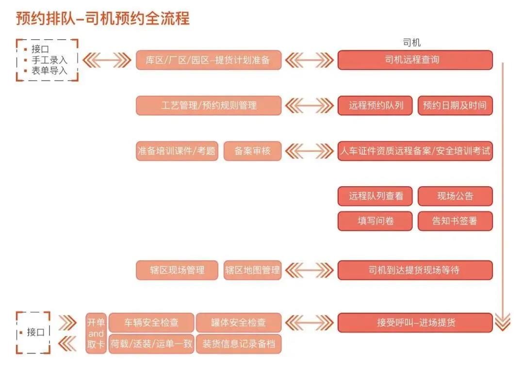 通(tong)過(guo)“車輛(liang)預(yu)(yu)約(yue)排隊系統”,工廠/庫區(qu)可根據(ju)自(zi)己業務和生產情況,自(zi)主開放(fang)預(yu)(yu)約(yue)裝(zhuang)卸(xie)貨的時間段;司(si)機可提前查詢裝(zhuang)卸(xie)貨計劃預(yu)(yu)約(yue)裝(zhuang)卸(xie)貨時間,有效(xiao)化解司(si)機無計劃、無秩序(xu)涌向園區(qu)、庫區(qu)所帶來的車輛(liang)積壓安全隱患。