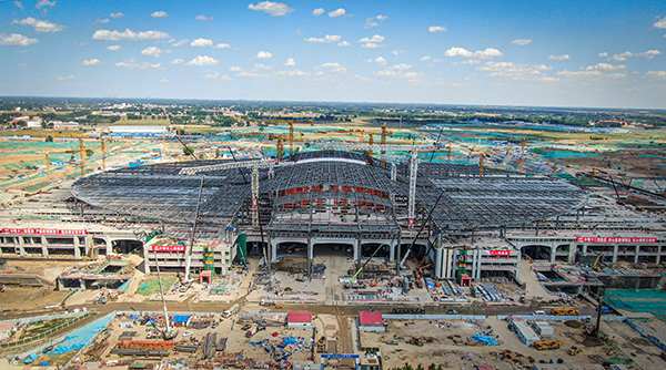 目前(qian),京雄車場45600平方(fang)米(mi)(mi)的站臺混凝土結(jie)構(gou)(gou),18000平方(fang)米(mi)(mi)高架候(hou)車廳鋼結(jie)構(gou)(gou)樓層板,606米(mi)(mi)跨度、覆(fu)蓋面積12萬(wan)平方(fang)米(mi)(mi)的鋼結(jie)構(gou)(gou)屋蓋已全部施工(gong)完成。