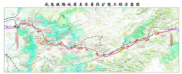 目前對成(cheng)昆(kun)鐵路(lu)進行的擴能改造(zao),主要是(shi)增建(jian)二(er)線(xian)(xian)以(yi)及新建(jian)雙(shuang)線(xian)(xian),又稱成(cheng)昆(kun)鐵路(lu)復線(xian)(xian)工(gong)(gong)程(cheng),分為成(cheng)都至峨眉(mei)(mei)段(duan)(duan)(duan)、峨眉(mei)(mei)至米(mi)易段(duan)(duan)(duan)、米(mi)易至攀枝花段(duan)(duan)(duan)、永仁至廣通段(duan)(duan)(duan)、廣通至昆(kun)明(ming)段(duan)(duan)(duan),整(zheng)個工(gong)(gong)程(cheng)采取分段(duan)(duan)(duan)建(jian)設的方式進行改造(zao)。該工(gong)(gong)程(cheng)是(shi)國家西部大開發重點工(gong)(gong)程(cheng)建(jian)設項(xiang)目,其(qi)中峨米(mi)段(duan)(duan)(duan)全(quan)(quan)長386.334公里,是(shi)全(quan)(quan)線(xian)(xian)修建(jian)難(nan)度最大、里程(cheng)最長的一段(duan)(duan)(duan),所(suo)處位置是(shi)有(you)著“地質博物館”之稱的攀西地區(qu),全(quan)(quan)段(duan)(duan)(duan)共有(you)橋(qiao)梁140余座、隧道40余座,橋(qiao)隧比達到73%。