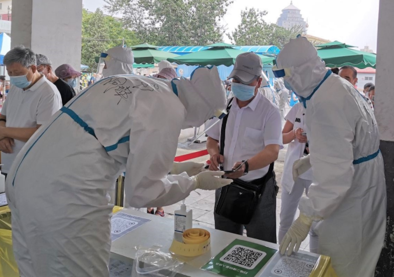 黨(dang)員何艮(gen)(gen)艮(gen)(gen)負(fu)責配合醫(yi)護(hu)人員為小區居(ju)民進(jin)行(xing)第(di)(di)二次核酸檢(jian)測(ce)(ce)。在(zai)醫(yi)護(hu)人員的(de)(de)(de)(de)指導下(xia)(xia)(xia)(xia),何艮(gen)(gen)艮(gen)(gen)按(an)照(zhao)8大步(bu)驟(zou)第(di)(di)一(yi)次學(xue)習(xi)穿防護(hu)服(fu)(fu):第(di)(di)1步(bu)清理手(shou)部(bu)衛生(sheng);第(di)(di)2步(bu)戴(dai)一(yi)次性帽(mao)子(zi);第(di)(di)3步(bu)戴(dai)醫(yi)用防護(hu)口(kou)罩并進(jin)行(xing)氣密(mi)性測(ce)(ce)試(shi)……一(yi)整套穿戴(dai)下(xia)(xia)(xia)(xia)來,何艮(gen)(gen)艮(gen)(gen)早(zao)已滿頭大汗,而脫(tuo)下(xia)(xia)(xia)(xia)防護(hu)服(fu)(fu)也是一(yi)系列規(gui)定的(de)(de)(de)(de)煩瑣動(dong)作(zuo),加上相(xiang)互檢(jian)查,每(mei)次穿脫(tuo)防護(hu)服(fu)(fu)都需(xu)要十多分鐘時間。穿著防護(hu)服(fu)(fu),何艮(gen)(gen)艮(gen)(gen)在(zai)38℃的(de)(de)(de)(de)高溫下(xia)(xia)(xia)(xia)持(chi)續站立工作(zuo)近7個(ge)小時,呼吸(xi)不暢(chang),陣陣頭暈(yun),但看到居(ju)民烈日下(xia)(xia)(xia)(xia)排隊(dui)做檢(jian)測(ce)(ce)而焦慮的(de)(de)(de)(de)神情,他又(you)咬牙(ya)堅(jian)持(chi)了下(xia)(xia)(xia)(xia)去(qu)。從早(zao)上7點到下(xia)(xia)(xia)(xia)午2點,何艮(gen)(gen)艮(gen)(gen)共錄(lu)入195名居(ju)民信息,粘(zhan)貼195個(ge)咽拭子(zi)試(shi)劑盒標簽(qian)并發放到每(mei)人手(shou)中(zhong)。