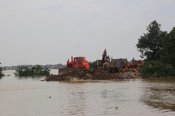 11日(ri)凌晨4時(shi),常州分公司連夜(ye)緊急(ji)調運的2臺三一205挖掘(jue)機(ji)、SD16推土機(ji)到達現(xian)場。當日(ri),相關負責人前出一線(xian)、現(xian)場指揮,搶險分隊迅速配合消防(fang)人員轉移受(shou)困群眾,聯系鄱(po)陽縣(xian)政府有關部門以及(ji)沿線(xian)所(suo)涉及(ji)村、鎮等(deng)單(dan)位(wei)負責人,協調料源保障、交通管(guan)制、調整食宿(su)場所(suo)等(deng)工作(zuo),采購(gou)安(an)全防(fang)護、指揮器具(ju)、夜(ye)間照明相關設備(bei)和材(cai)料,截至目前相關準(zhun)備(bei)工作(zuo)已全部完成。截至12日(ri)早上(shang)6時(shi),累計(ji)填(tian)筑土石(shi)方9700多方,決口(kou)封堵已進(jin)占50米。