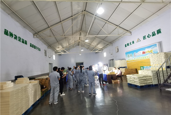 遼寧石油相關負責人、大連凱洋集團、盤糧集團主要負責人在直播間內現場試吃盤錦大米