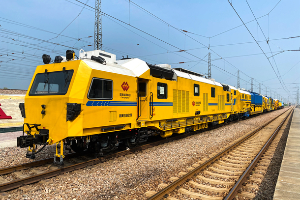 世界首列鐵路道床吸污車組在朔黃鐵路原平南站整裝待發
