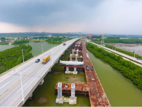 雷(lei)州灣上(shang),碧波(bo)萬頃(qing),吊機擎天;大橋兩(liang)側,紅樹(shu)搖曳,郁郁蔥(cong)(cong)蔥(cong)(cong)。中交一航局承建(jian)的廣東玉(yu)湛高速公路東海(hai)島特(te)大橋跨越國家級紅樹(shu)林自然保護區,區內有紅樹(shu)林25種(zhong)、鳥(niao)類194種(zhong)、貝類130種(zhong)、魚類139種(zhong)。