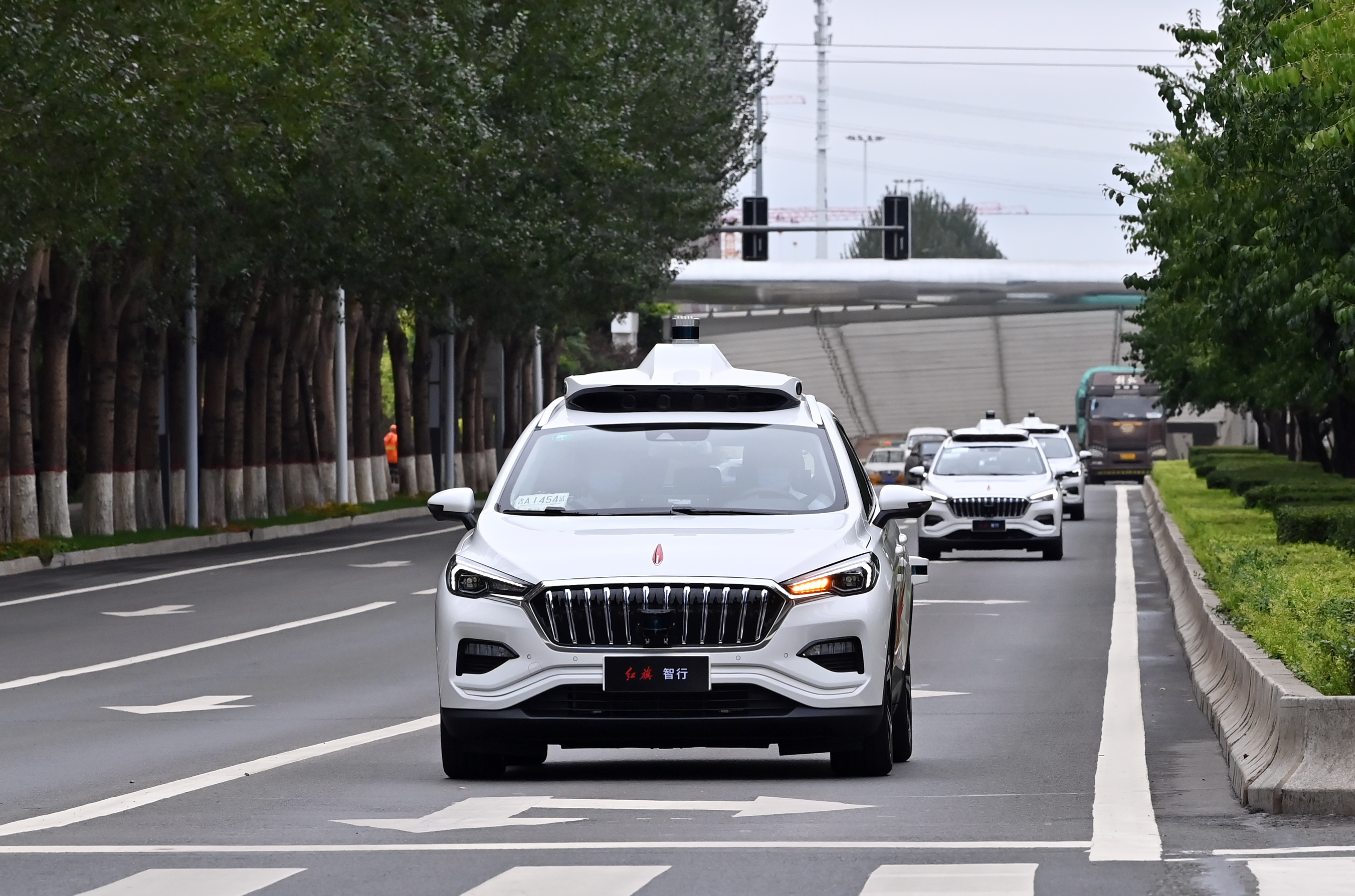 8月29日,“旗智春城”智能網聯示范區啟動儀式在中國一汽舉行。圖為自動駕駛汽車在示范區內運行。